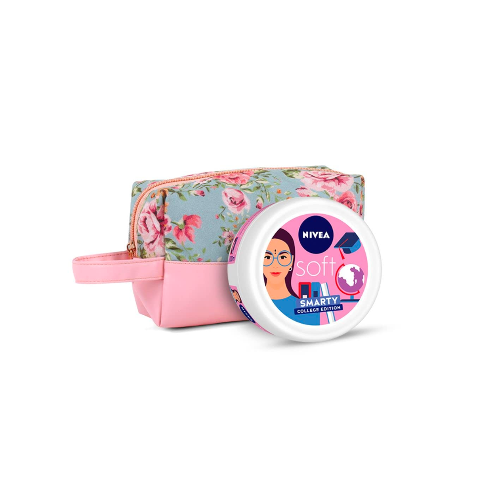Nivea Soft Smarty College Edition Moisturizer 300 ml with Floral Styling Pouch
