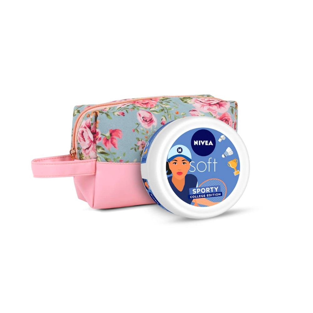 Nivea Soft Sporty College Edition Moisturizer - 300 ml with Floral Styling Pouch