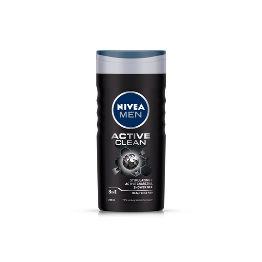 Nivea Men Body Wash, Active Clean With Active Charcoal, Shower Gel For Body, Face &...