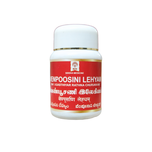 Venpoosani LehyamQuantity: 200gmManufacturer: SKMCategory: SiddhaIngredients:Venpooshani saru - Thazham vizhudhu saru - Elumichai pazha saru -...