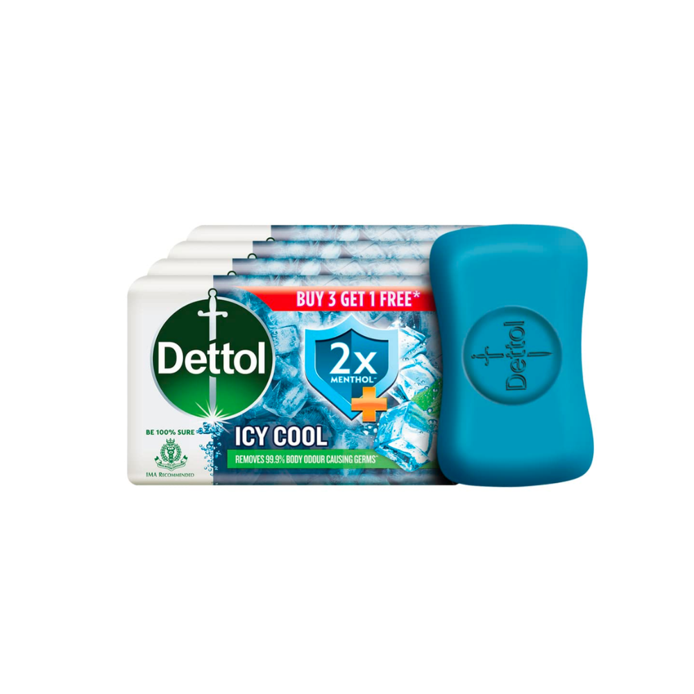 Dettol Intense Cool Bathing Soap Bar with Menthol (Buy 3 Get 1 Free - 75g each)