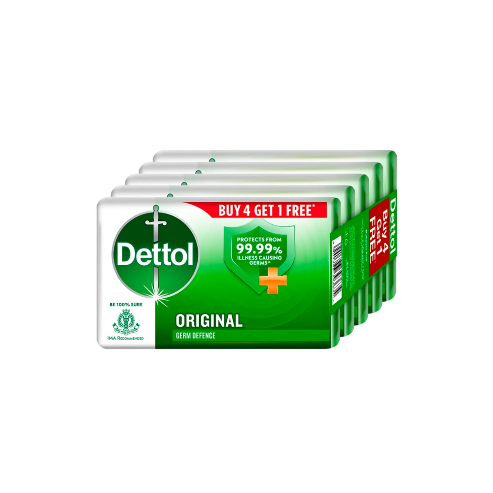 Dettol Original Germ Protection Bathing Soap Bar (Buy 4 Get 1 Free - 75g Each)