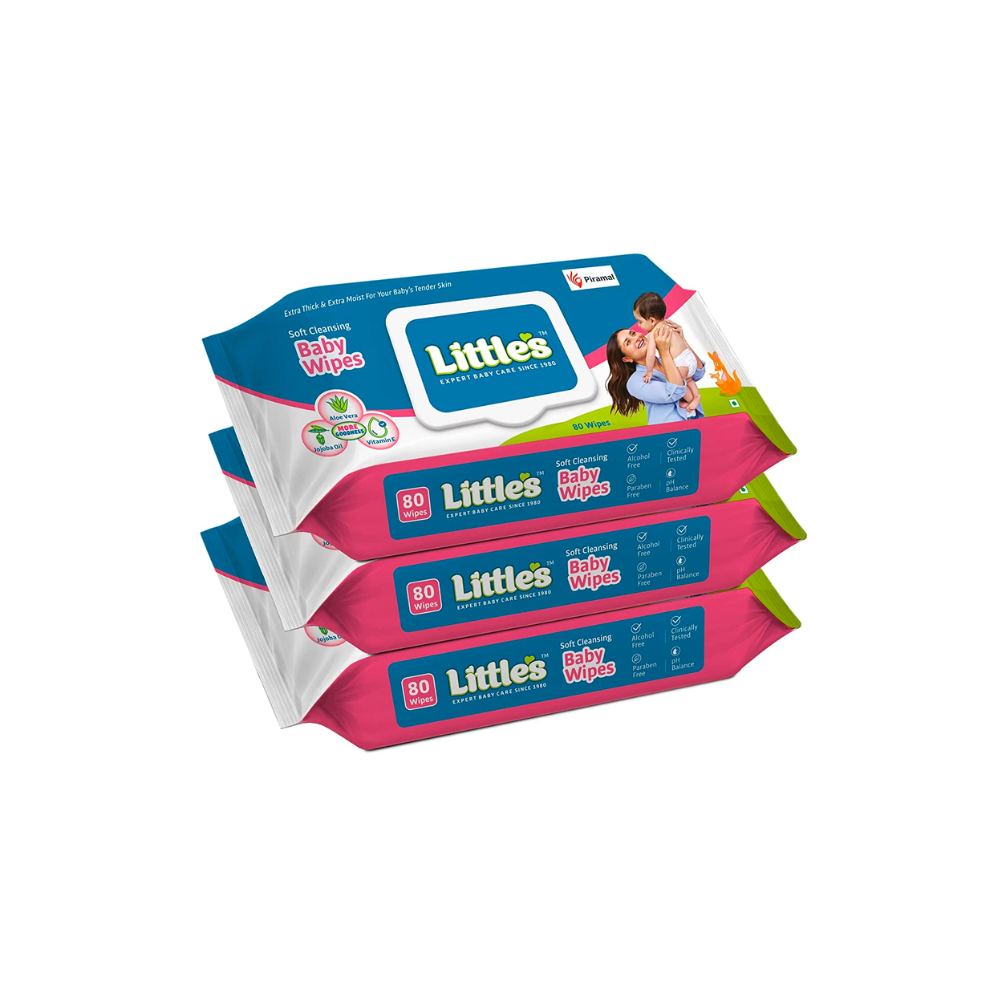 Little's Soft Cleansing Baby Wipes Lid - 80 Wipes (Pack of 3)