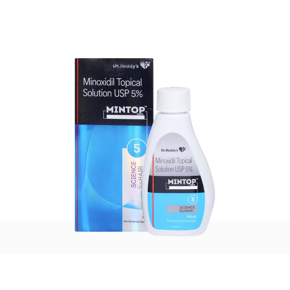 Mintop Forte 5% Solution is a medicine used to treat common hereditary hair loss. It can prevent further hair loss and help hair to re-grow. It works by increasing blood flow to the hair follicles on your scalp, which prevents hair cell death and also enhances new hair growth. It is most effective for baldness or thinning at the top of the scalp but less effective at the front or for receding hairline.